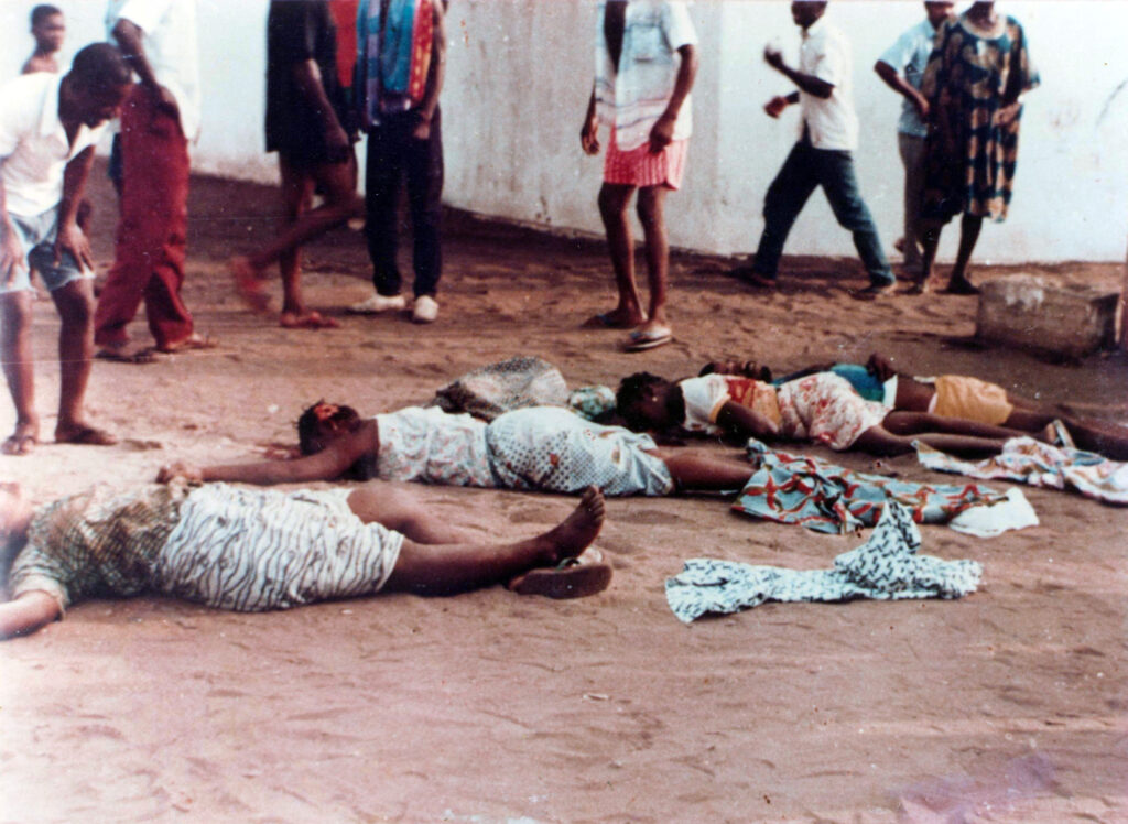 Dans les rues de Lomé les tirs se poursuivent à l’aveuglette, sur les habitants vaquant à leurs occupations matinales citadins de la capitale, puis toute la journée et c’est au total une trentaine de civils qui seront ainsi massacrés avec des armes de guerre.