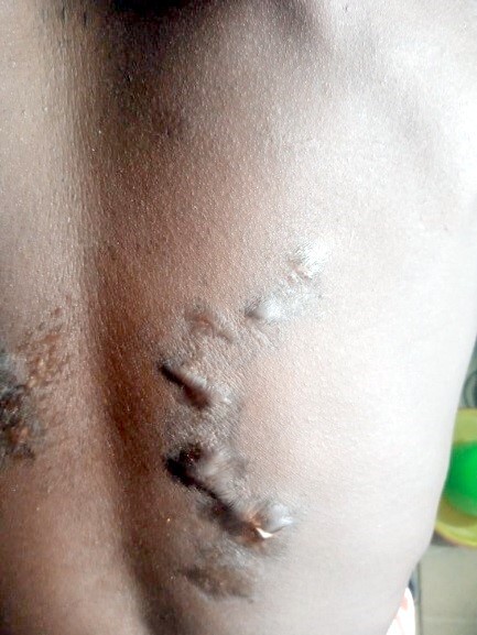 | Séquelles laissées au dos d’OURO-MEDJI Sadikou par les tortures subies des mains-mêmes du Commandant du Camp GIPN d’Agoè-Logopé |