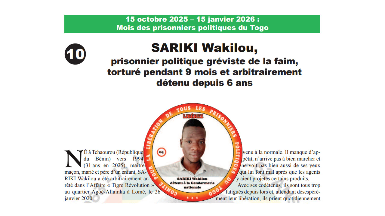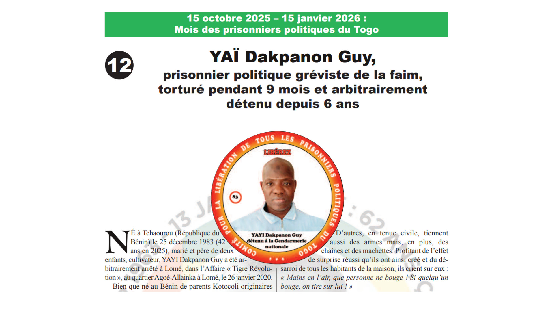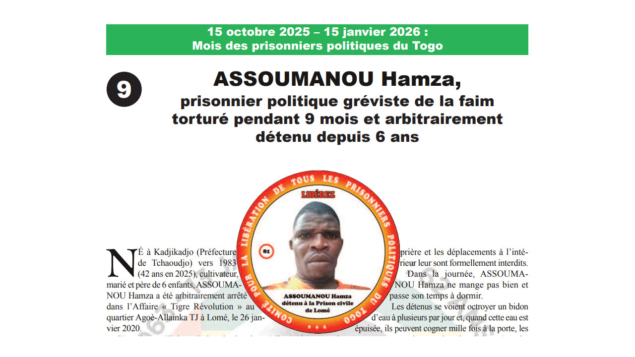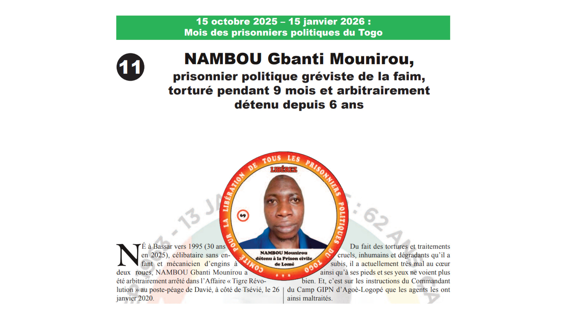 Directement conduit au Camp GIPN d’Agoè-Logopé après son arrestation, on lui demande dès son premier interrogatoire ce qu’il vient faire à Lomé. Dès qu’il a répondu que c’est pour la marche pacifique que PNP a lancé dans la capitale, on commence à le taper dans tous les sens, de gauche à droite, avec des manches…