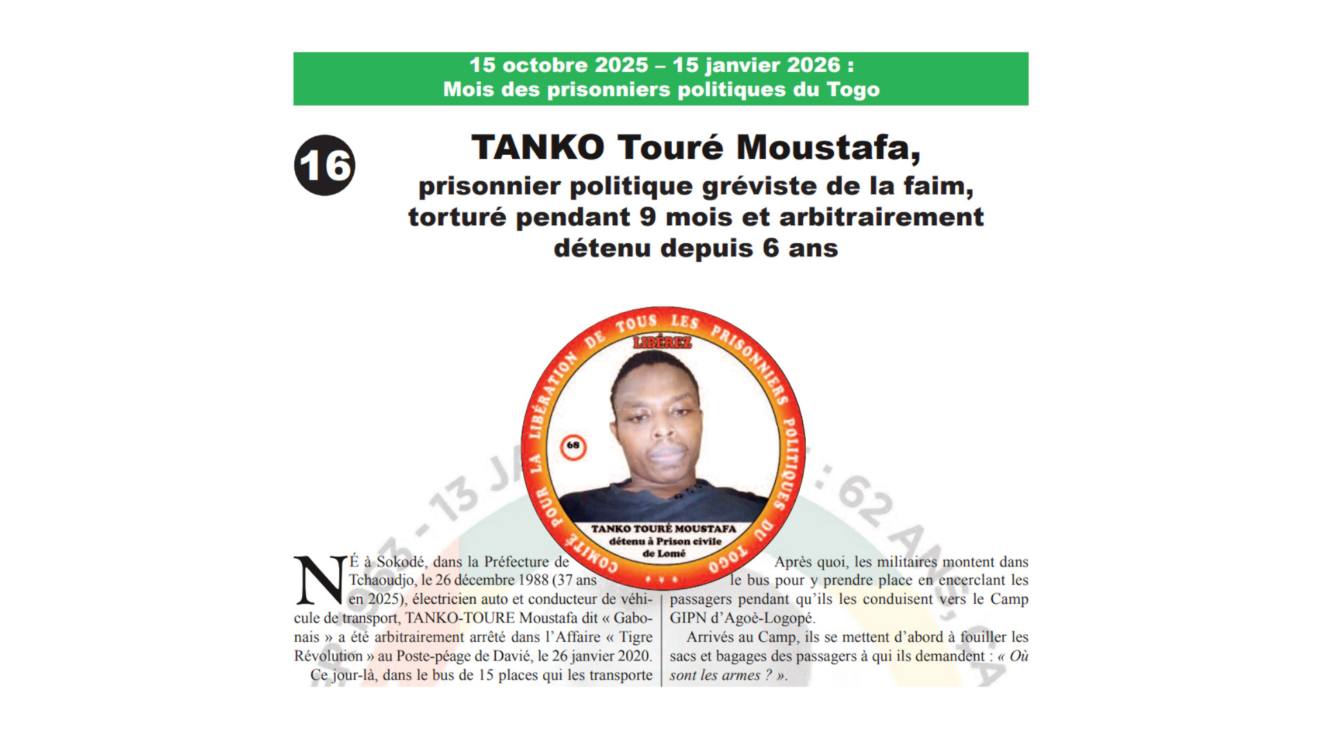 Initialement traqué depuis Sokodé dans cette affaire de Tigre révolution, c’est dans sa maison au quartier Bourê-Koufouloumou que les gendarmes sont d’abord venus le chercher, le poussant à s’enfuir dans son village d’Agouloudê après qu’il ait été prévenu qu’ils sont à sa recherche puis à rentrer ensuite par-là dans le Bénin où il s’est mis…